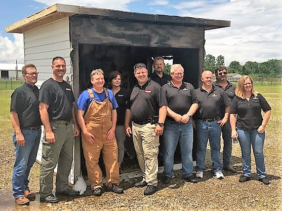 After a barbecue lunch the program moved to the adjacent Franklin County Fairgrounds, where sponsors Thompson Building with materials from Holmes Lumber and Lifestyle Floring had prepared two pods for a live burn.