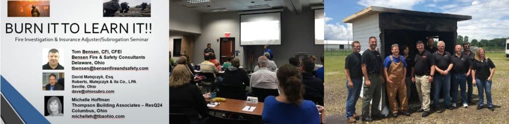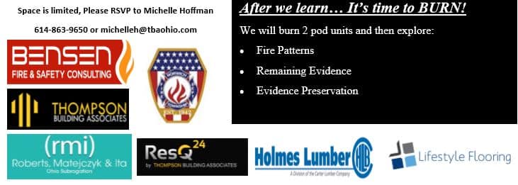 The event featured a morning classroom program addressing legal and insurance issues. The program was held at the Norwich Township and Fire Department state-of-the-art training facility. A live burn was held in the afternoon at the adjacent Franklin County Fairgrounds. The program was attended by approximately 150 representatives of the insurance industry (adjusters, subrogation units and in-house counsel), agents, property managers and local fire officials.