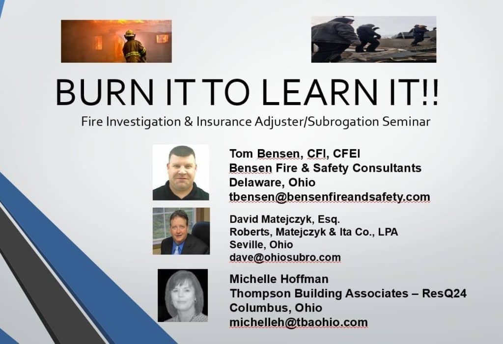 RMI was pleased to participate and co-sponsor “Burn it – to Learn it” - a day long information packed fire investigation and insurance subrogation/adjuster seminar.