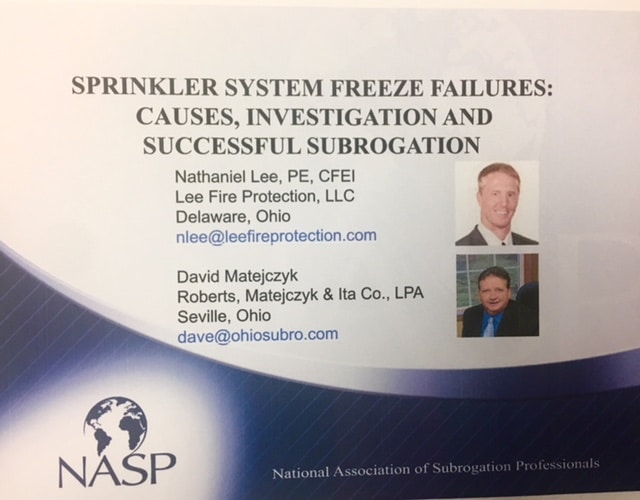 Once again, Ohio is gripped with plunging temperatures and resulting claims from pipe freeze losses. Recently, RMI was pleased to present a program along with Lee Fire Protection on “Sprinkler System Freeze Failures: Causes, Investigation and Successful Subrogation.” The webinar was a joint presentation with PLRB and NASP.